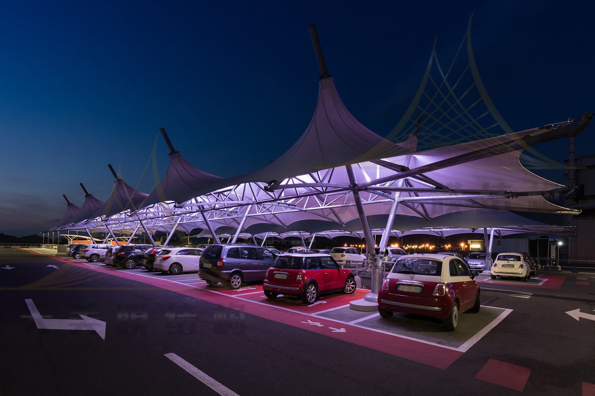 家樂福超市樓頂停車場膜結(jié)構(gòu)車棚夜景展示: